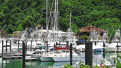Situado en la Marina Village del Resort Los Sueños, en el segundo piso del edificio de entrada de la Marina, el Hook-Up ofrece una espectacular vista panorámica hacia las montañas de bosque tropical que rodean Los Sueños Resort, la Marina Los Sueños y las aguas del Pacífico en la bahía de Herradura.