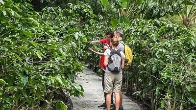 Esta caminata fácil de un cuarto de milla brinda la oportunidad perfecta para aprender sobre los métodos de producción utilizados en la preparación del café costarricense de principio a fin.