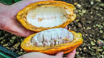 La siguiente parte de su recorrido presenta a su grupo el grano de cacao.