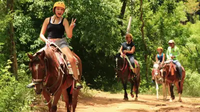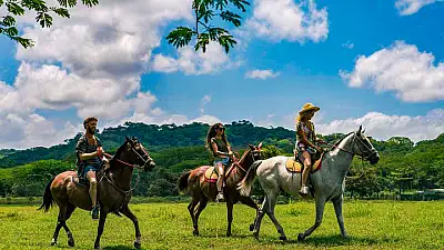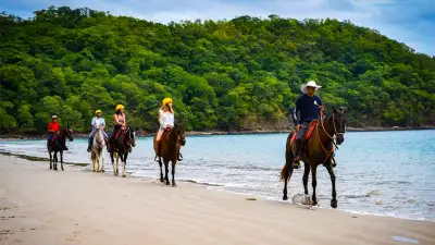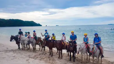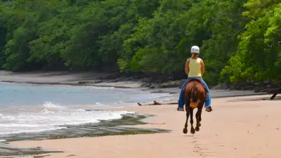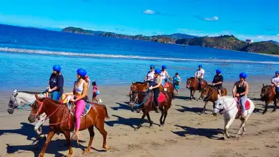 Descubre la emoción de explorar la belleza salvaje de Costa Rica a caballo, perfecto para jinetes de todos los niveles, desde principiantes hasta ecuestres experimentados. Esta experiencia única te permite conectar con caballos dóciles y bien entrenados mientras disfrutas de los paisajes pintorescos de Guanacaste. Las familias son bienvenidas, ya que esta aventura es adecuada para niños de ocho años en adelante. Imagina un paseo tranquilo por playas vírgenes, bosques exuberantes y senderos escénicos, todo guiado por un profesional que garantiza tu seguridad y comodidad. Ya sea que busques una salida familiar, una escapada romántica o simplemente una nueva forma de disfrutar la naturaleza, este tour a caballo es la elección perfecta para un día inolvidable en el paraíso.